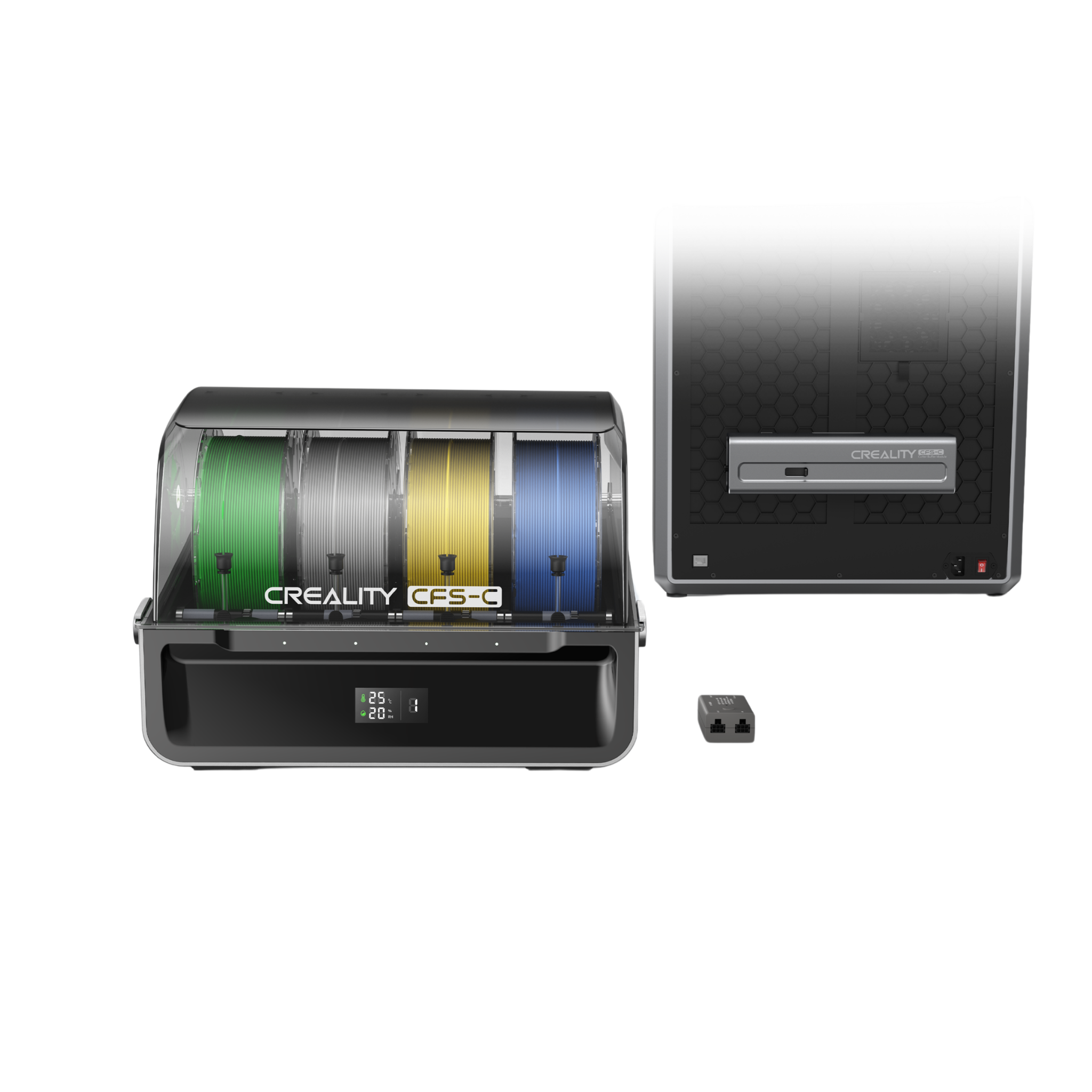 The CFS-C (Creality Filament System) is a comprehensive solution designed to deliver consistent, high-quality multi colour 3D printing. Compatible with Creality K1 Max 2025, K1C 2025, K1 Max, K1C, K1 & K1 SE 3D printers, this system is compatible with a wide range of filament types, including PLA, ABS, PETG, and more. The CFS-C can accommodate 4 spools of filament.