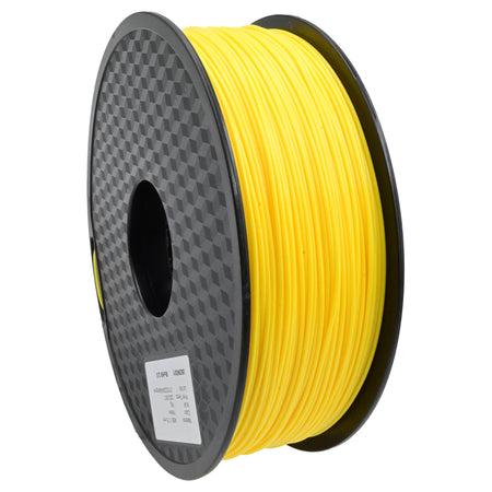 - Yellow ABS filament for open source 3D Printers. High quality, constant diameter, bright constant colours for accurate repeatable prints. The filament comes on a plastic spool and is sealed in a plastic bag with desiccant and packaged in a box (sometimes we remove the filament from the box to fit everything into your parcel). Each spool is marked with the type of filament, the recommended printing temperature and the manufacturing batch number. We have a lot of confidence in the filament we supply, because we use it ourselves.